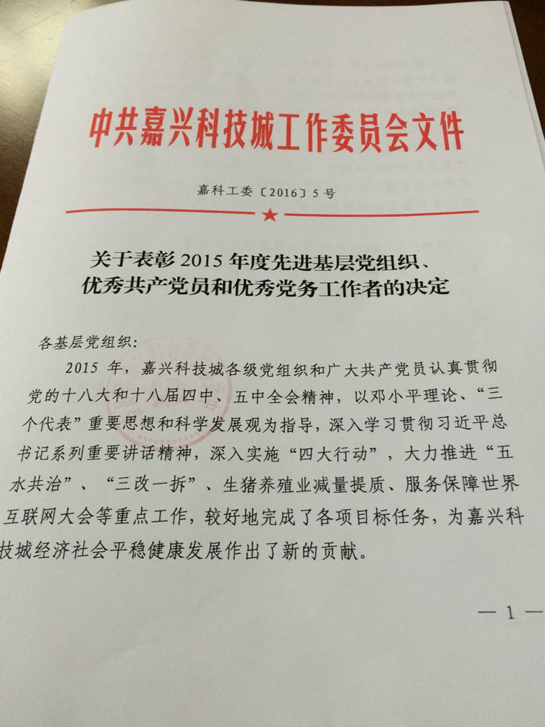 在7月1日召開的嘉興科技城慶祝中國共產(chǎn)黨成立95周年表彰大會(huì)上,99名黨員被授予“優(yōu)秀共產(chǎn)黨員”稱號(hào),我司盧永根、鄭勝利兩位黨員榜上有名,被授予“2015年度優(yōu)秀共產(chǎn)黨員”稱號(hào)。這是上級(jí)黨委對(duì)這兩位黨員工作的肯定,也是公司的集體榮譽(yù),希望全體共產(chǎn)黨員和員工向他們學(xué)習(xí),愛崗敬業(yè),立足崗位多作貢獻(xiàn)。