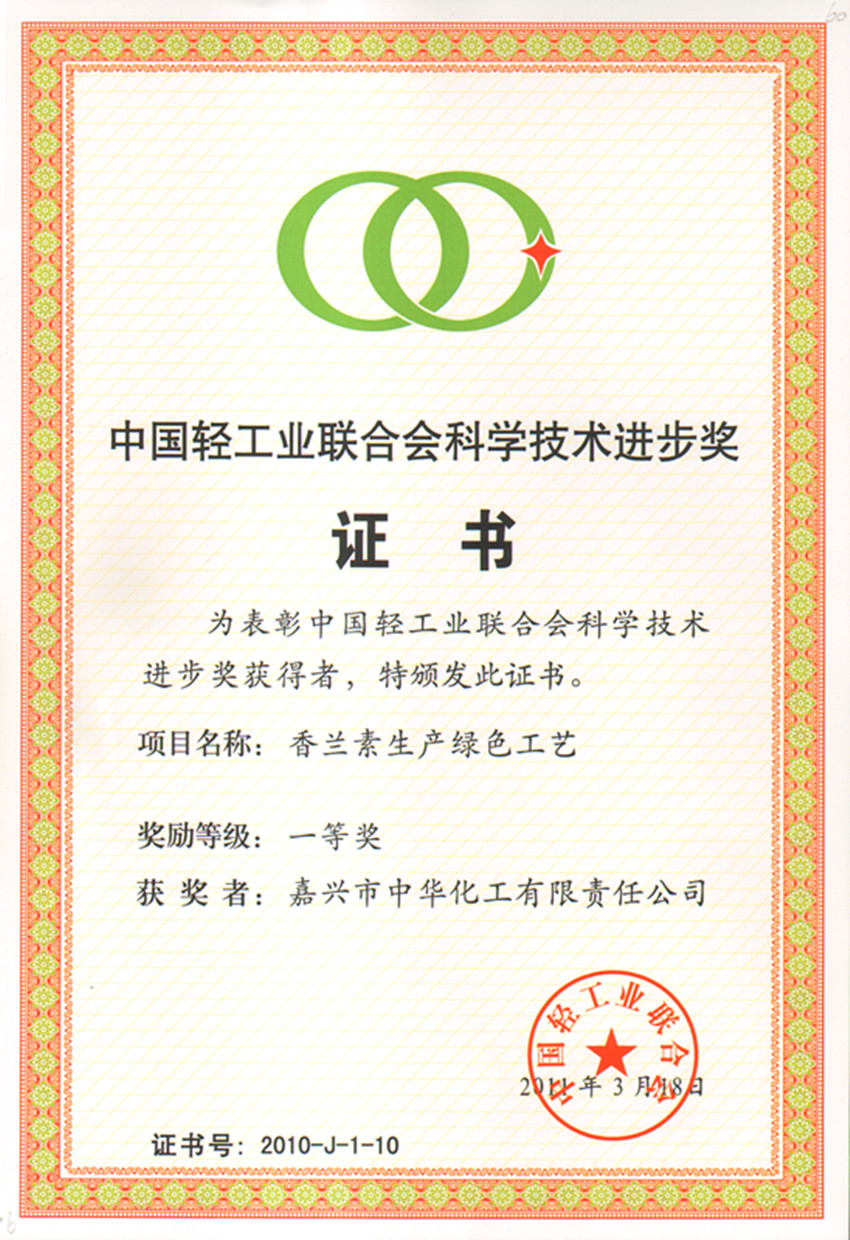 中華化工“香蘭素生產(chǎn)綠色工藝”獲部級(jí)科技進(jìn)步一等獎(jiǎng)