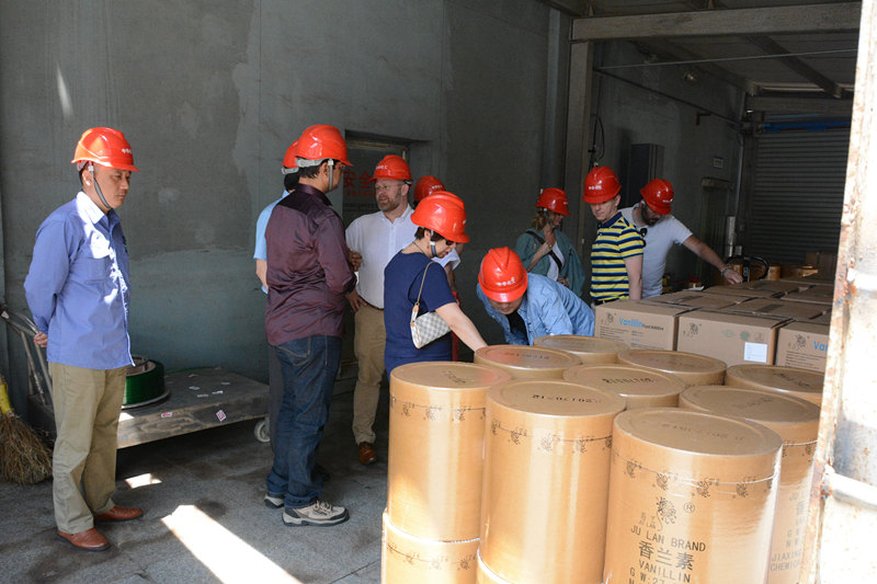 2017年5月11日上午,歐洲重要客戶一行8人蒞臨中華化工參觀考察,公司總經(jīng)理汪建根、外貿(mào)部經(jīng)理陳巍等接待了各位來賓。汪總以PPT的形式詳細(xì)介紹了公司的基本情況以及未來的發(fā)展規(guī)劃,同時希望與歐洲的合作會更加密切共贏,陳巍經(jīng)理也對各位來賓的提問一一做了解答。座談交流結(jié)束后,客人們參觀了公司香蘭素包裝車間和廠區(qū)。