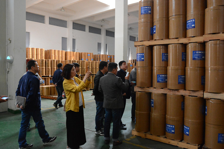 2016年4月18日,河南堅果炒貨商會秘書長張國和一行率團來中華化工參觀考察,公司領(lǐng)導(dǎo)汪建根、丁建勝、朱正清一起接待了考察團一行。在座談會上,汪總通過PPT的形式將公司的基本情況以及對于公司未來發(fā)展做了詳細的介紹,丁副總也針對河南炒貨市場的情況做了專門的交流,張秘書長也做了互動交流,表示以后兩地合作將會更加的密切。座談交流會結(jié)束后,參與考察的炒貨界客戶代表實地參觀了公司車間和成品倉庫。