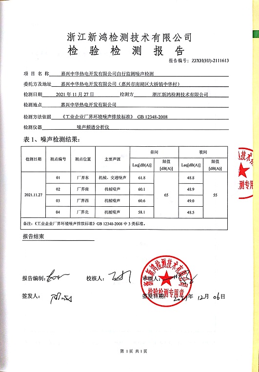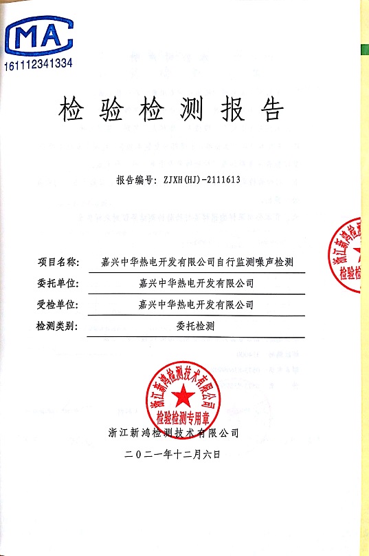 報告名稱:中華熱電12月廢氣、廢水、4季度噪聲檢測報告