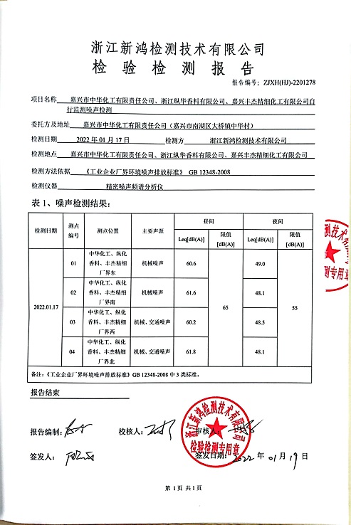 報(bào)告名稱:中華化工、縱華、豐杰2022年1季度噪聲檢測(cè)報(bào)告
