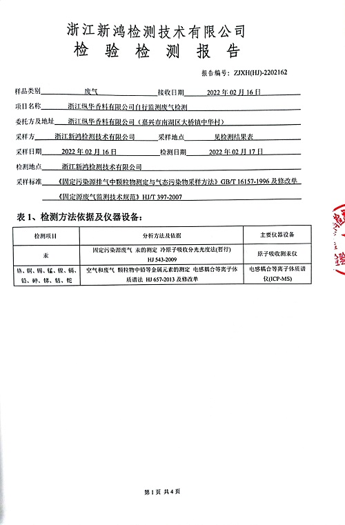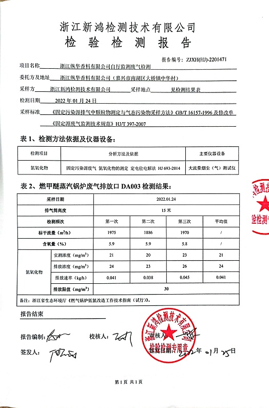 - 中華化工4季度檢測(cè)報(bào)告