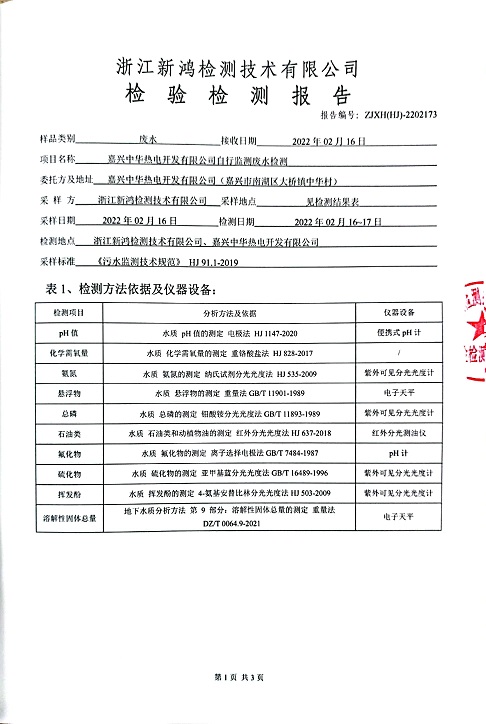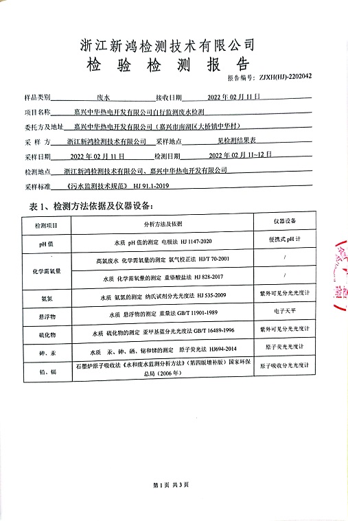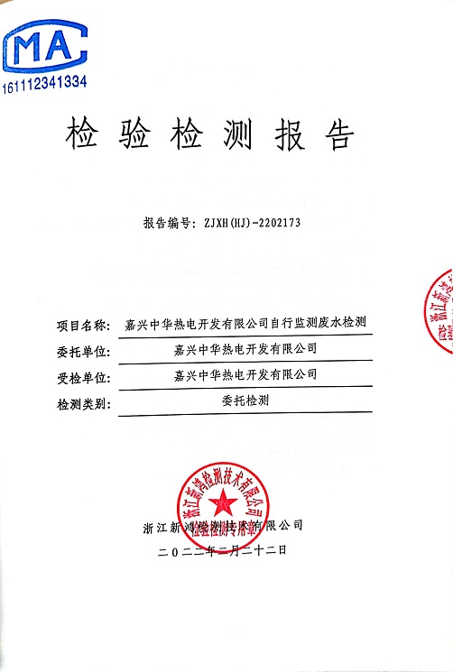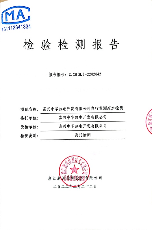 報(bào)告名稱:中華熱電2022.2月廢水檢測報(bào)告