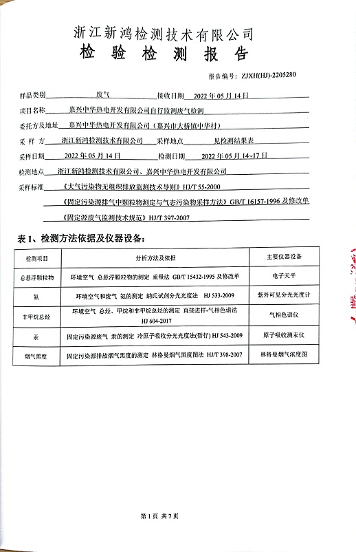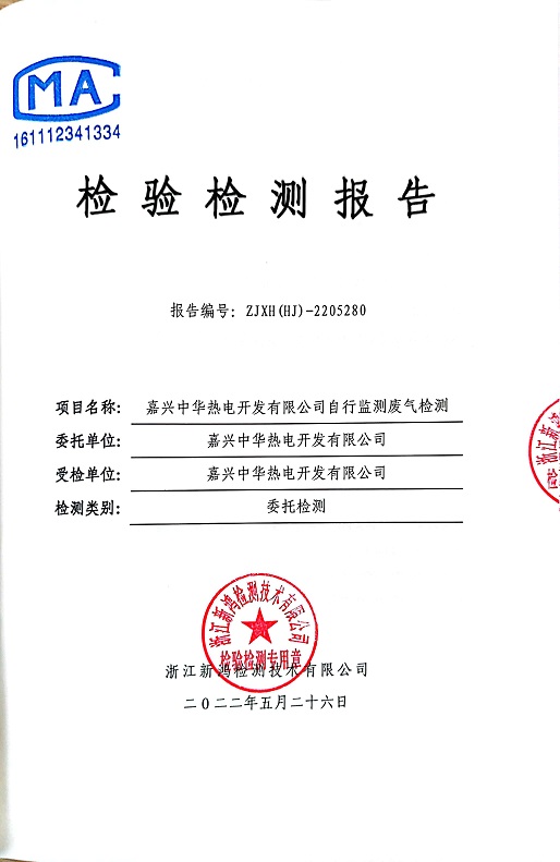 報(bào)告名稱(chēng):中華熱電2022.5月廢氣檢測(cè)報(bào)告