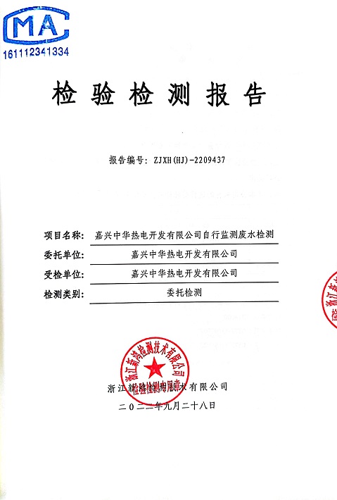 報告名稱:中華熱電2022年9月廢水檢測報告