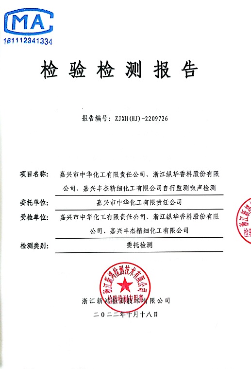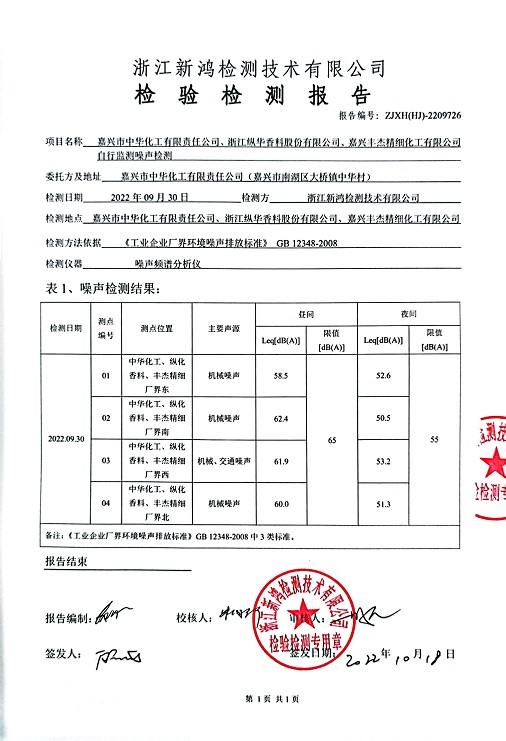 報(bào)告名稱:中華化工、縱華、豐杰2022年3季度噪聲檢測(cè)報(bào)告