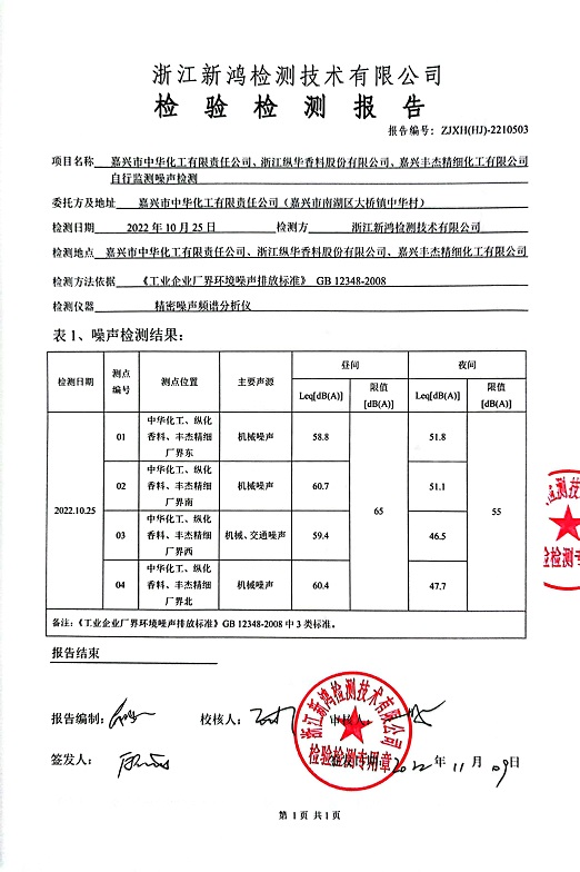 報(bào)告名稱:中華化工、縱華、豐杰2022年4季度噪聲檢測報(bào)告