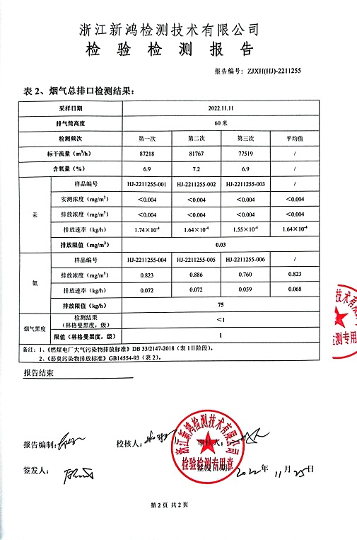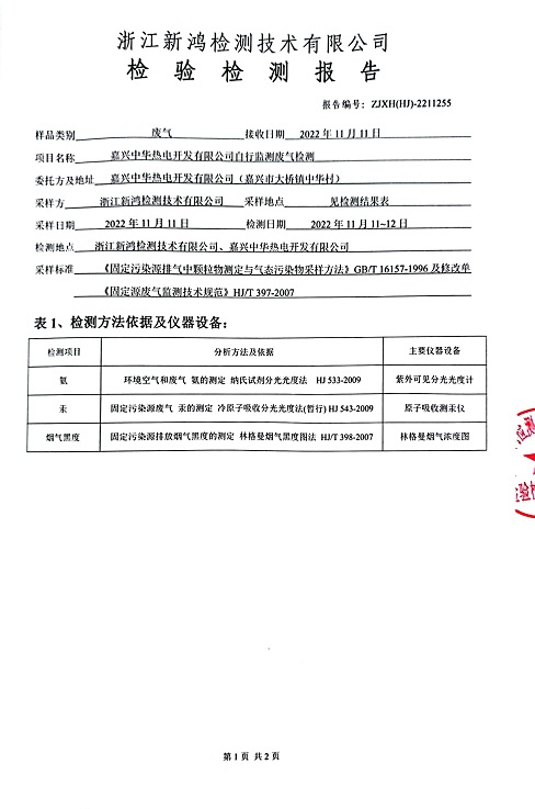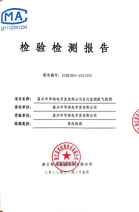 報告名稱:中華熱電2022年11月廢氣檢測報告