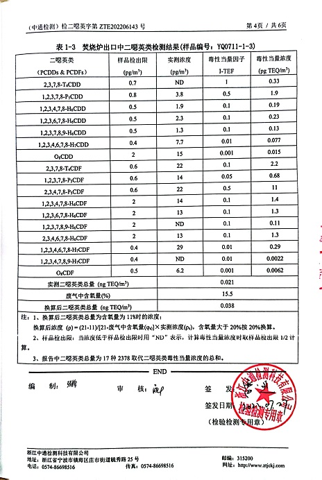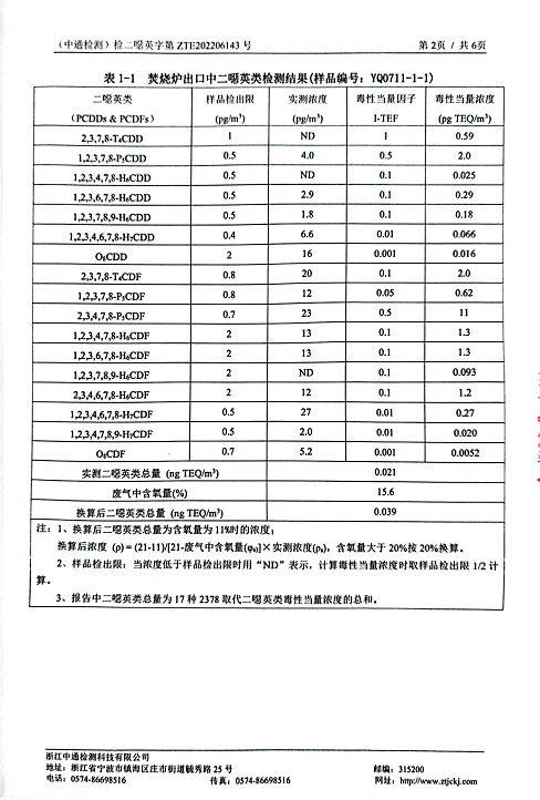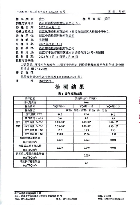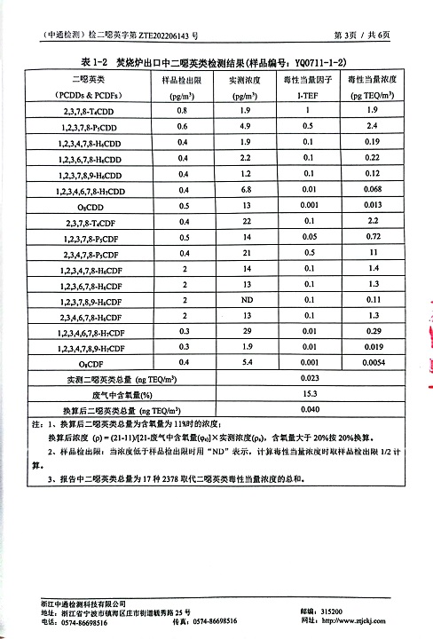 報告名稱:縱華2022年下半年二噁英檢測報告