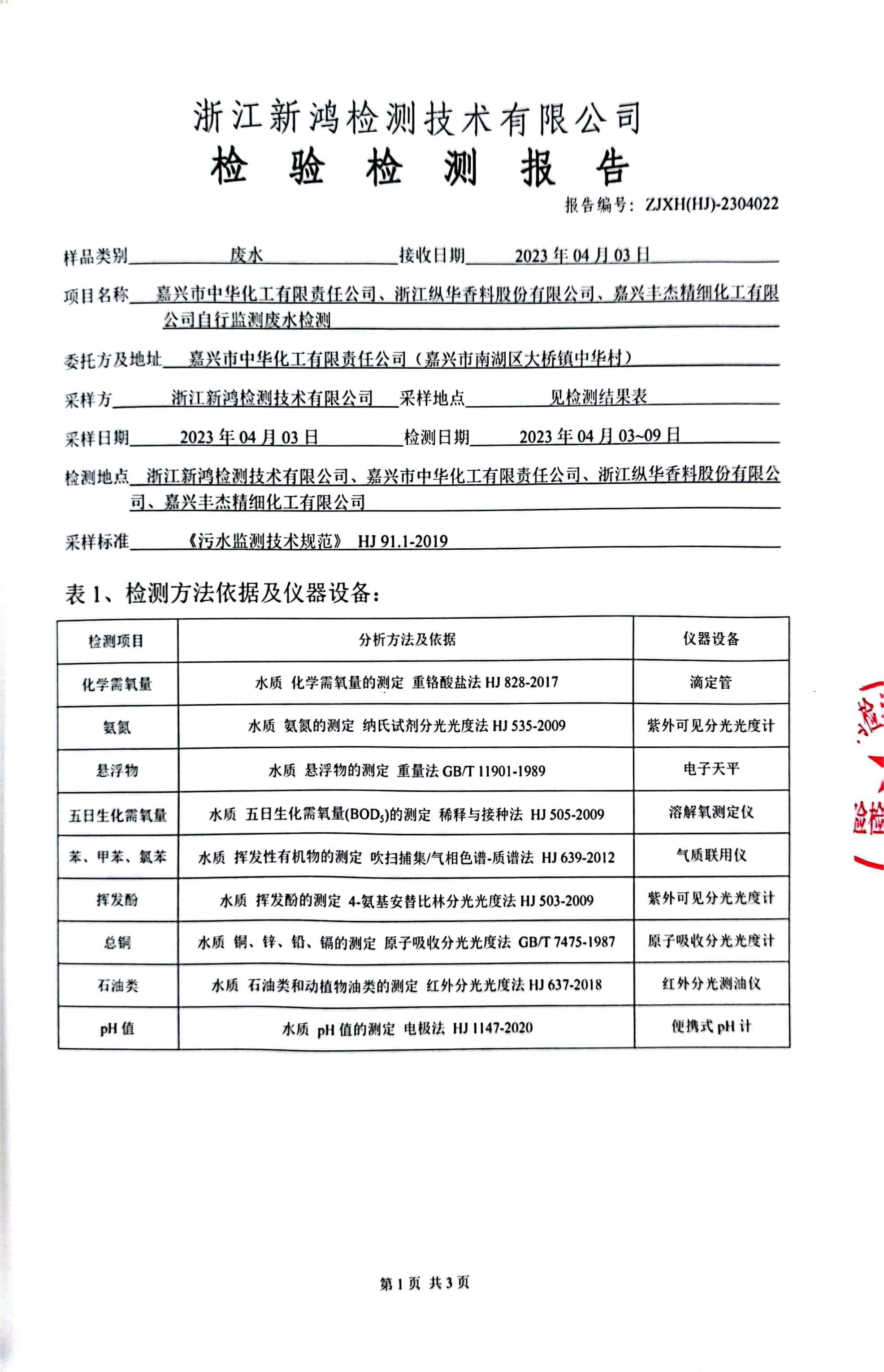 - 中華化工3季度廢水檢測報告