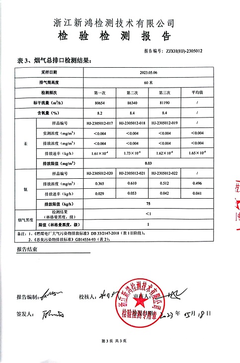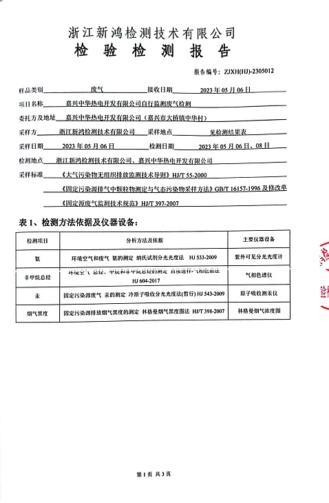 報告名稱:中華熱電2023.5月廢氣檢測報告