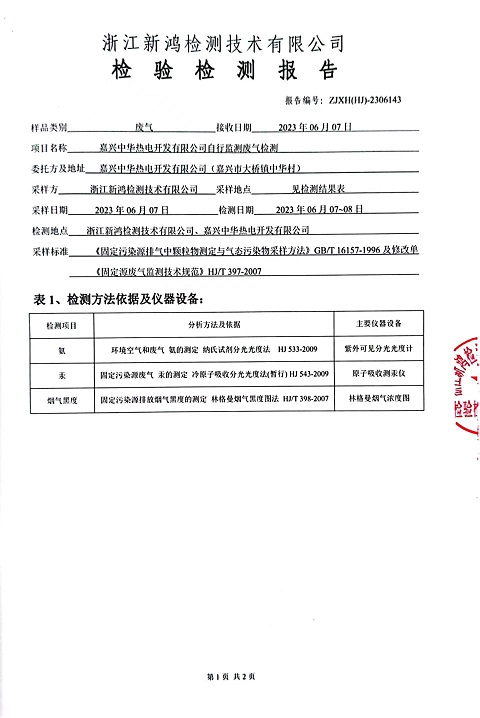 報(bào)告名稱:中華熱電2023.6月廢氣檢測報(bào)告