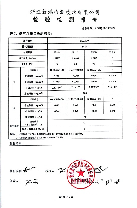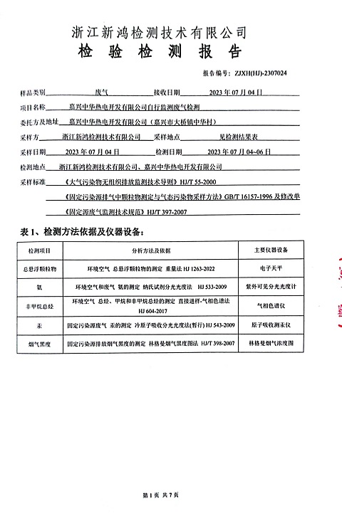 報(bào)告名稱:中華熱電2023.7月廢氣檢測報(bào)告
