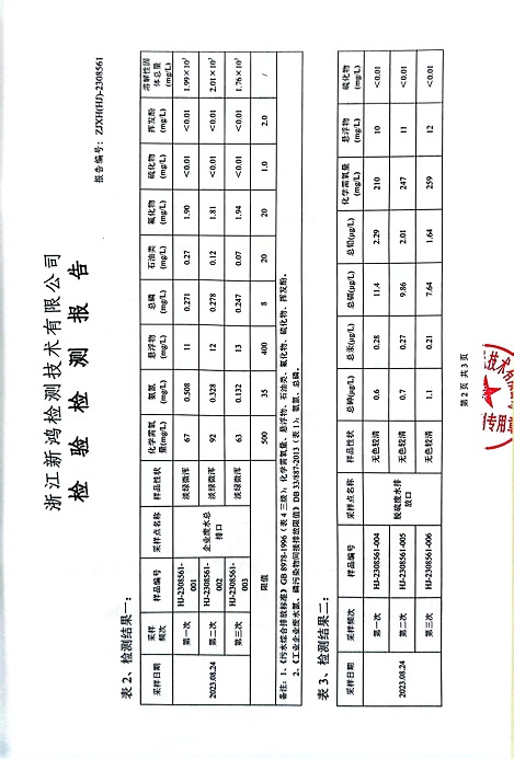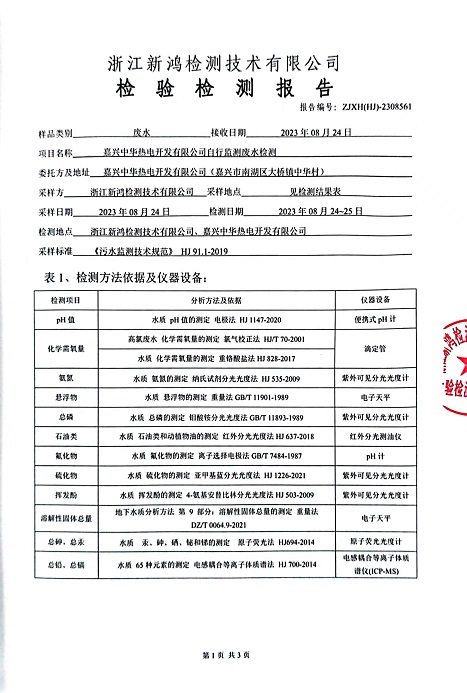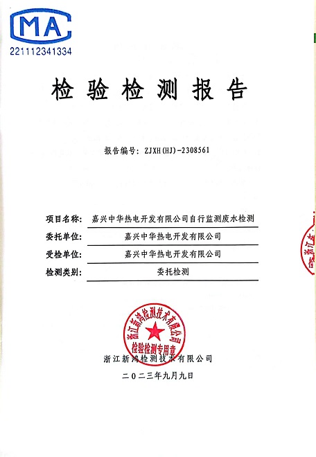 報(bào)告名稱:中華熱電2023.8月廢水檢測報(bào)告