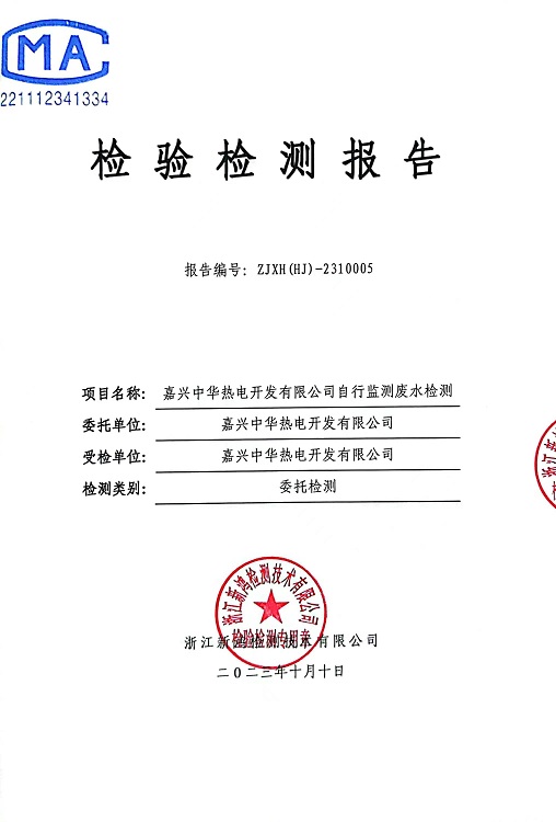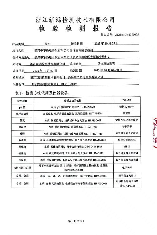 報(bào)告名稱:中華熱電2023.10月廢水檢測報(bào)告