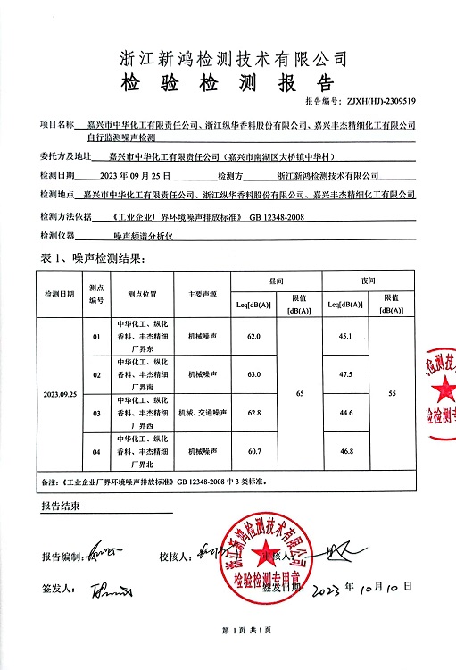 - 中華化工3季度噪聲檢測(cè)報(bào)告