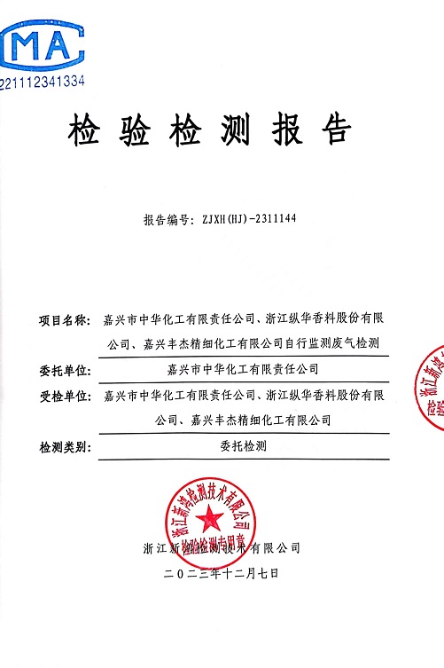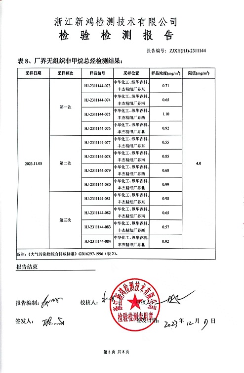 - 中華化工4季度檢測(cè)報(bào)告