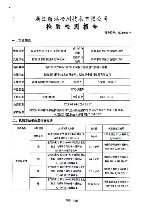 報(bào)告名稱(chēng):2024年縱華4月廢氣檢測(cè)報(bào)告