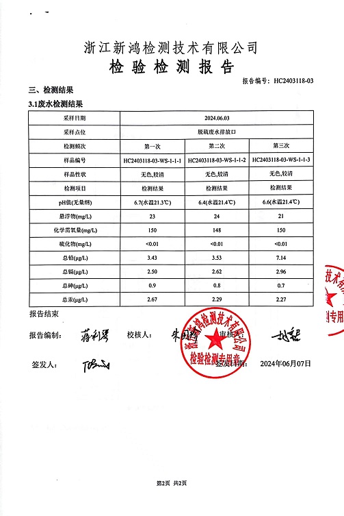 報(bào)告名稱:2024年中華熱電6月廢水檢測報(bào)告