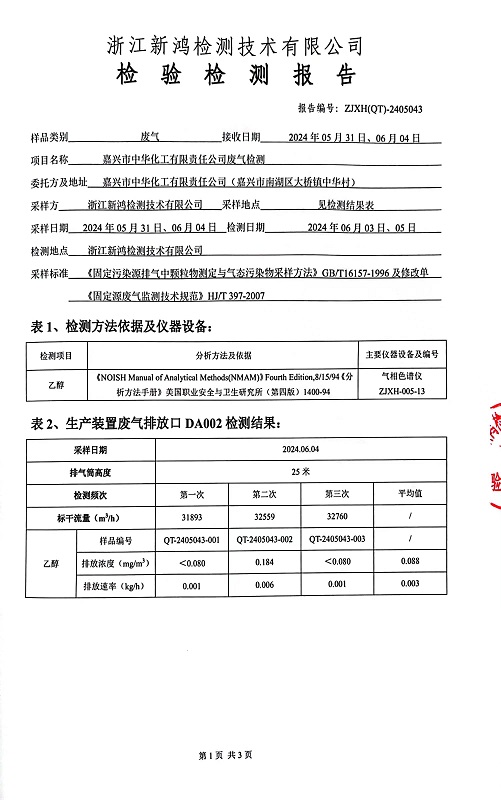 - 中華化工3季度廢氣檢測(cè)報(bào)告