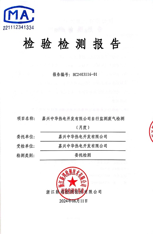 報(bào)告名稱:2024年中華熱電6月廢氣檢測(cè)報(bào)告