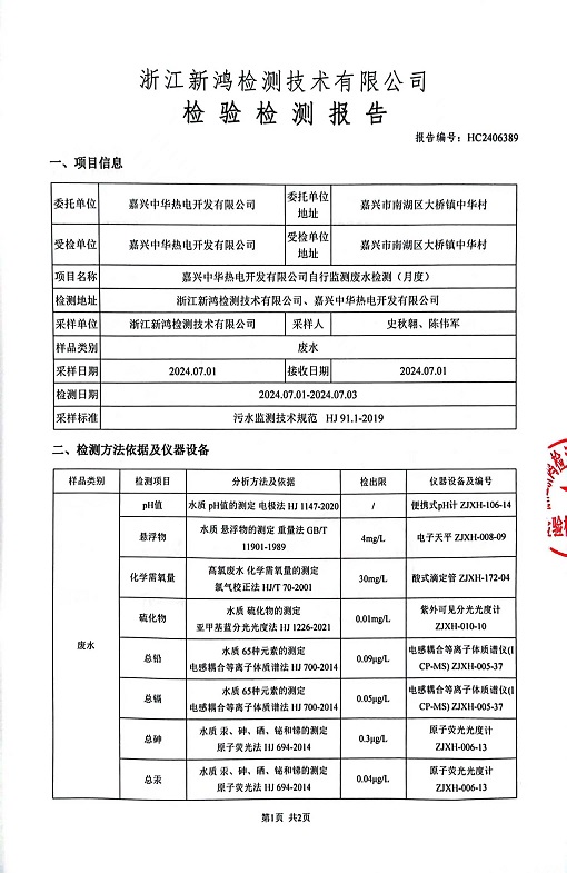 報告名稱:2024年中華熱電7月廢水