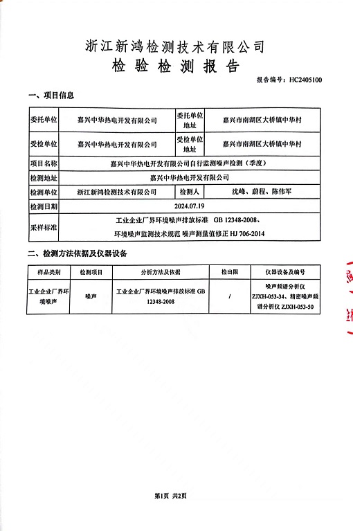 - 中華熱電3季度噪聲檢測報告
