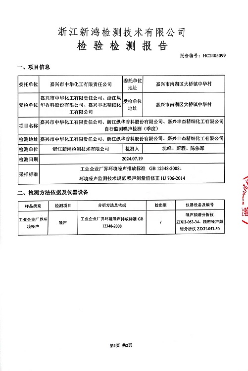 報(bào)告名稱(chēng):中華化工、縱華、豐杰3季度噪聲檢測(cè)報(bào)告