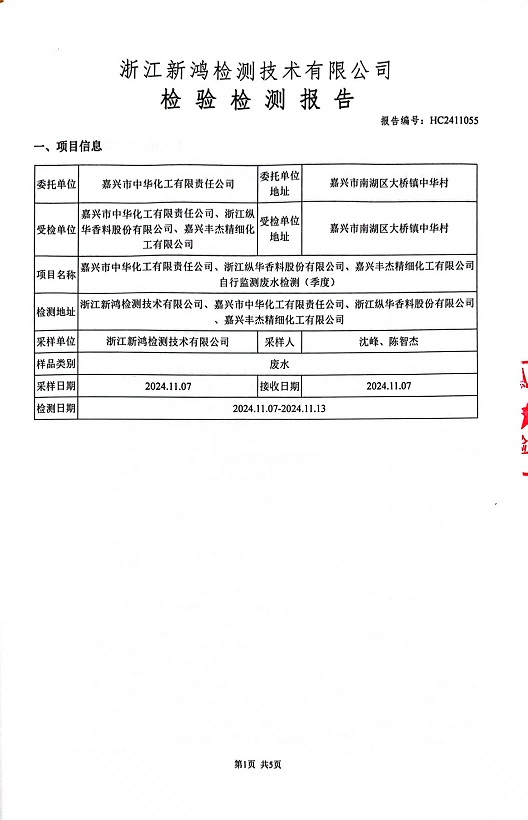 - 中華化工4季度檢測(cè)報(bào)告