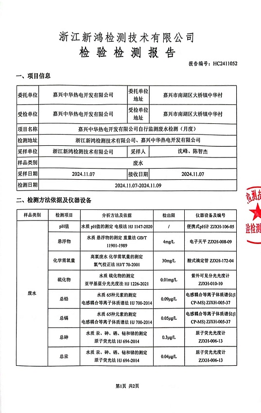 - 中華熱電11月廢水檢測(cè)報(bào)告