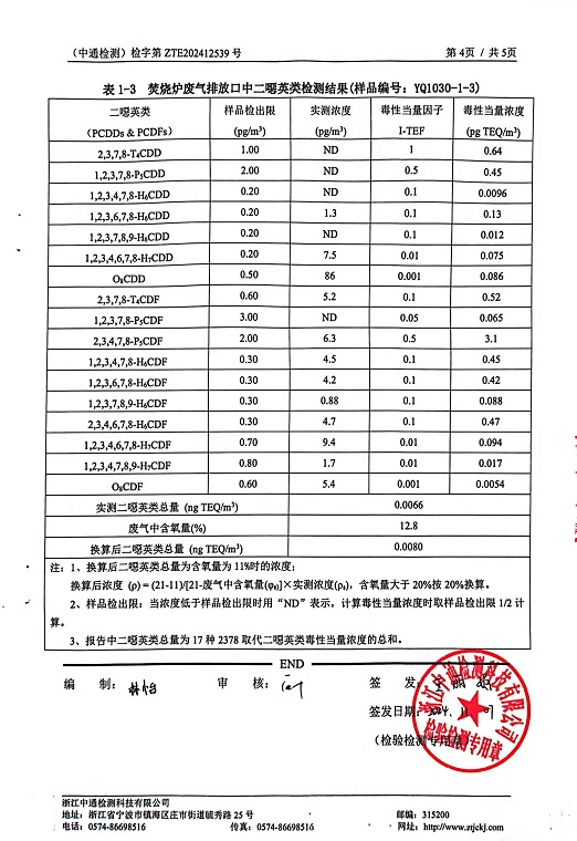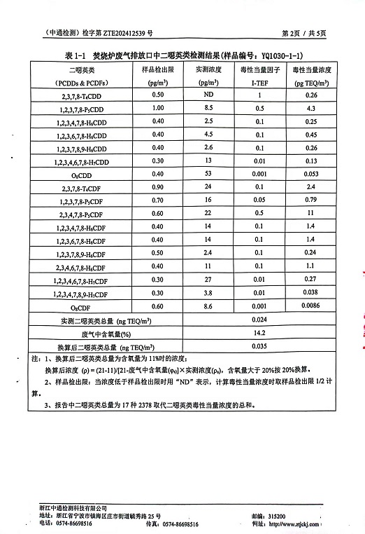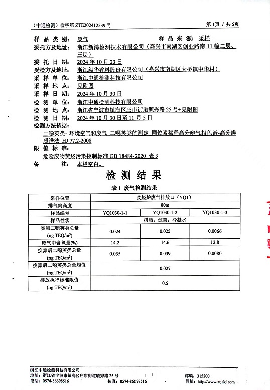 報告名稱:2024年縱華二噁英下半年檢測報告