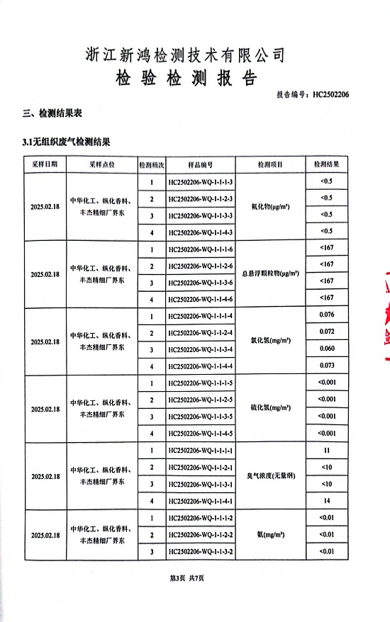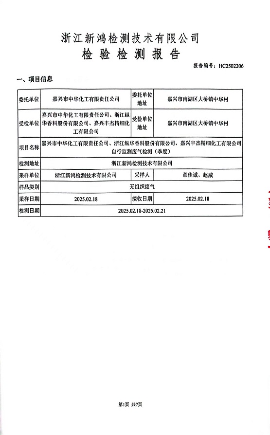 報(bào)告名稱:中華化工、縱華、豐杰2025年1季度廠界檢測報(bào)告