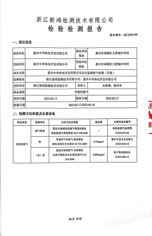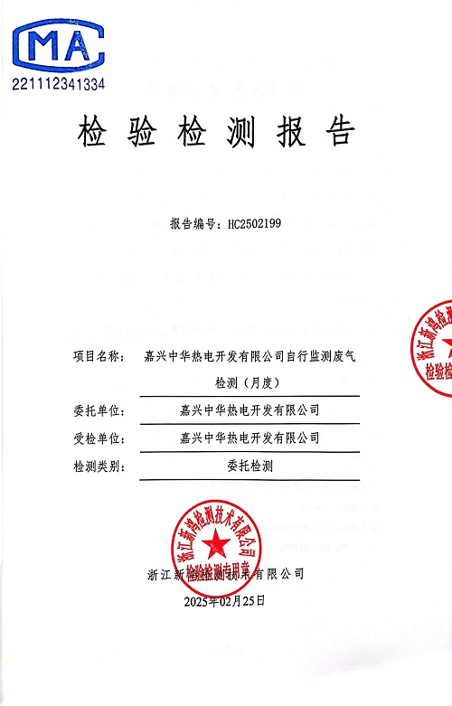 報(bào)告名稱:中華熱電2025年2月煙氣檢測(cè)報(bào)告