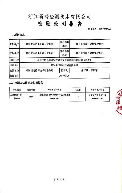 報告名稱:中華熱電2025年1季度噪聲檢測報告