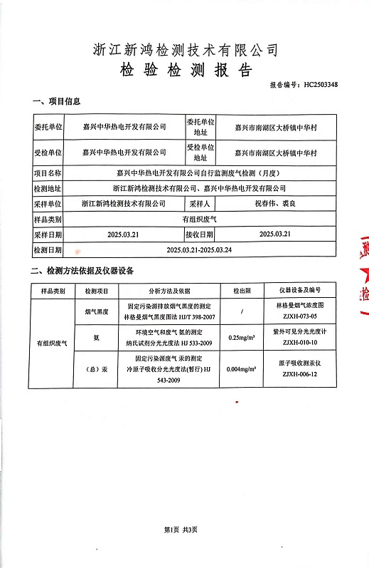 報(bào)告名稱(chēng):中華熱電3月廢氣檢測(cè)報(bào)告