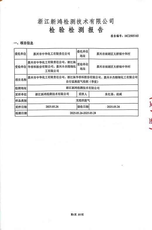 報(bào)告名稱:中華化工、縱華、豐杰2025年2季度廠界檢測報(bào)告
