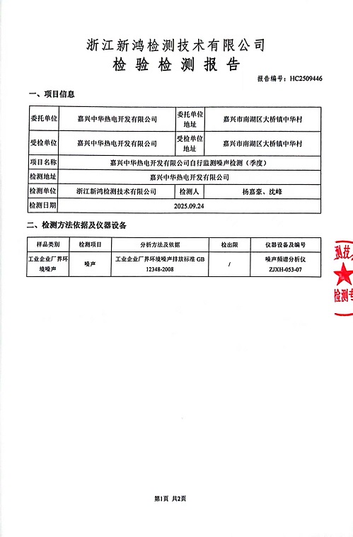 - 中華熱電3季度噪聲檢測報告