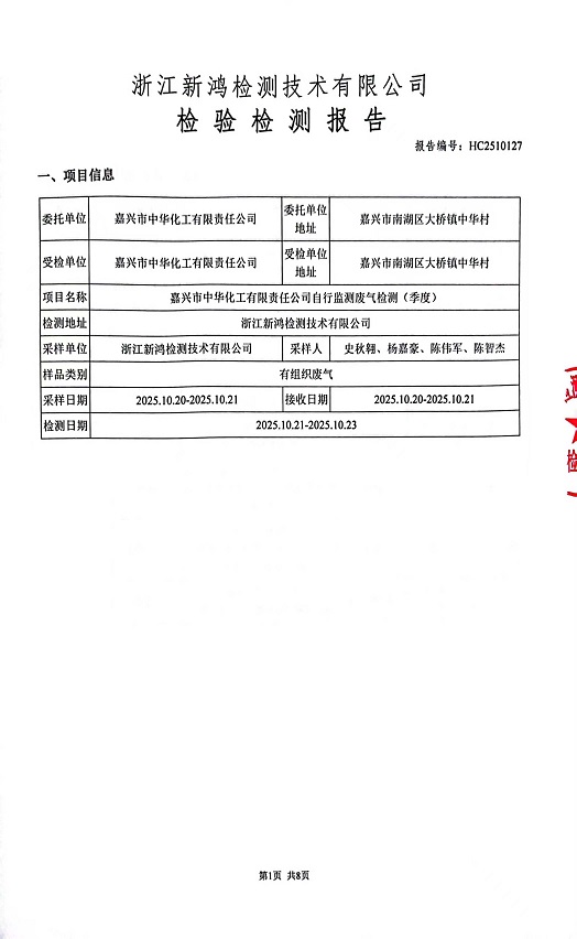 - 中華化工4季度檢測(cè)報(bào)告
