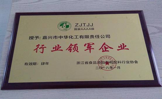 2018年130日,浙江省食添配行業(yè)協(xié)會第五屆第一次會員代表大會在浙江杭州中瑞大廈順利召開,我公司憑借良好的業(yè)績榮膺“行業(yè)領(lǐng)軍企業(yè)”榮譽稱號。