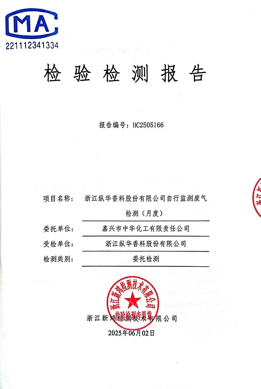 • 縱華香料5月廢氣檢測報告