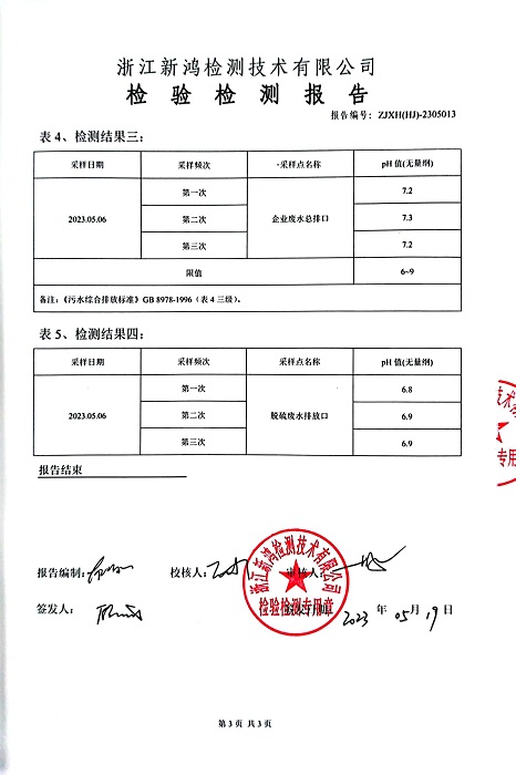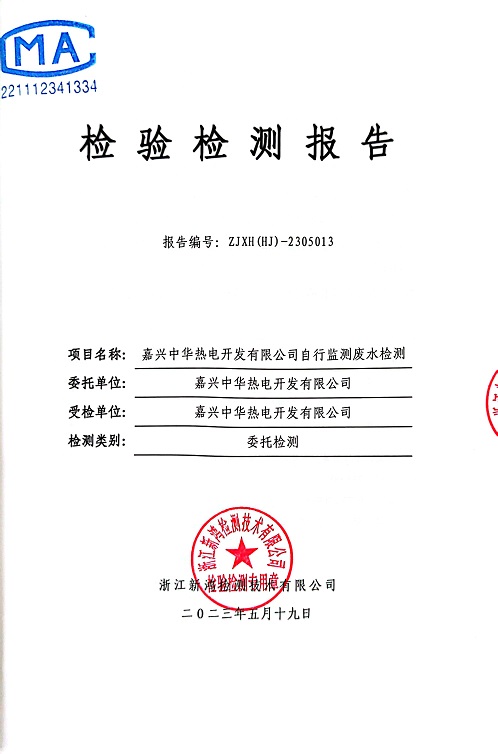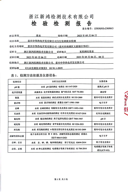 報告名稱:中華熱電2023.5月廢水檢測報告