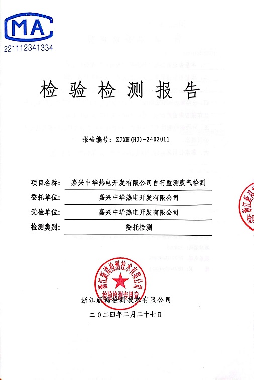 報(bào)告名稱:2024年中華熱電2月廢氣檢測(cè)報(bào)告