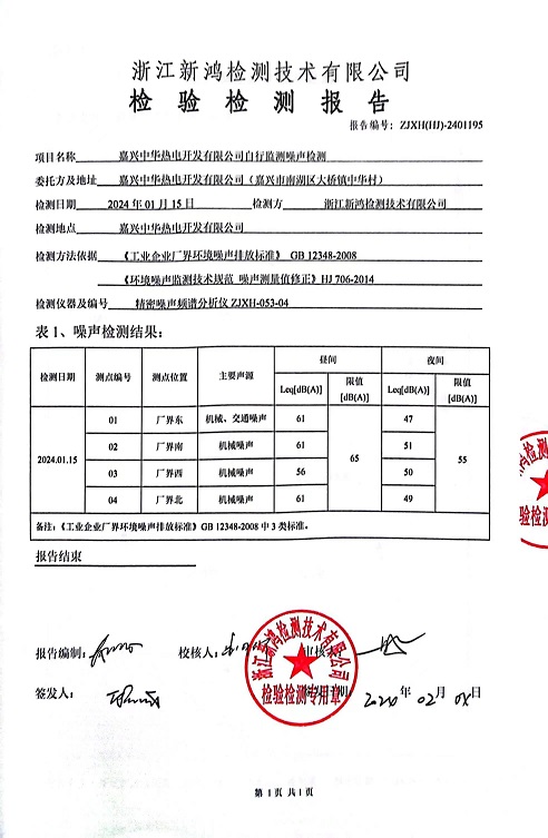 報(bào)告名稱:2023年中華熱電1季度噪聲檢測報(bào)告
