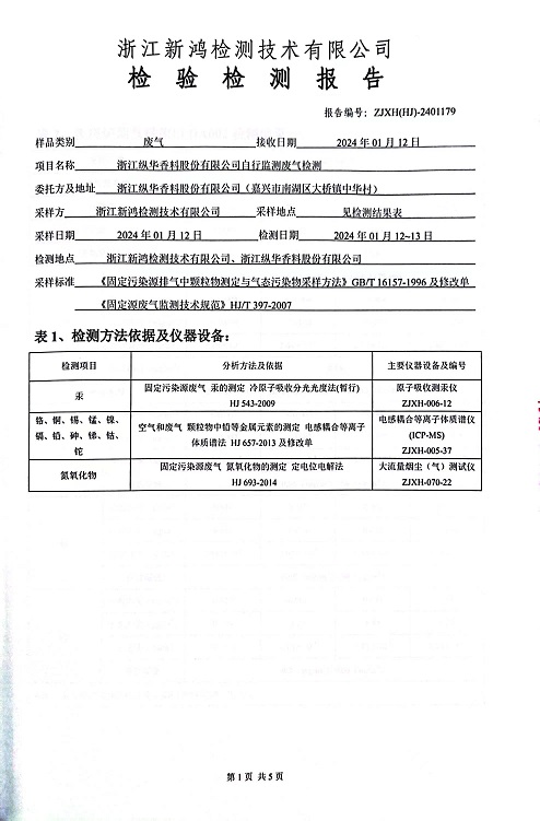 報(bào)告名稱(chēng):2024年縱華1月廢氣檢測(cè)報(bào)告