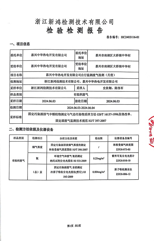 報(bào)告名稱:2024年中華熱電6月廢氣檢測(cè)報(bào)告