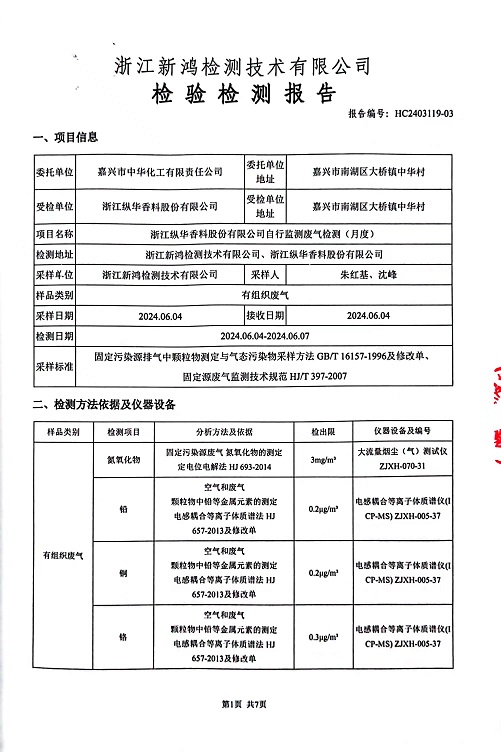 報(bào)告名稱:2024年縱華6月廢氣