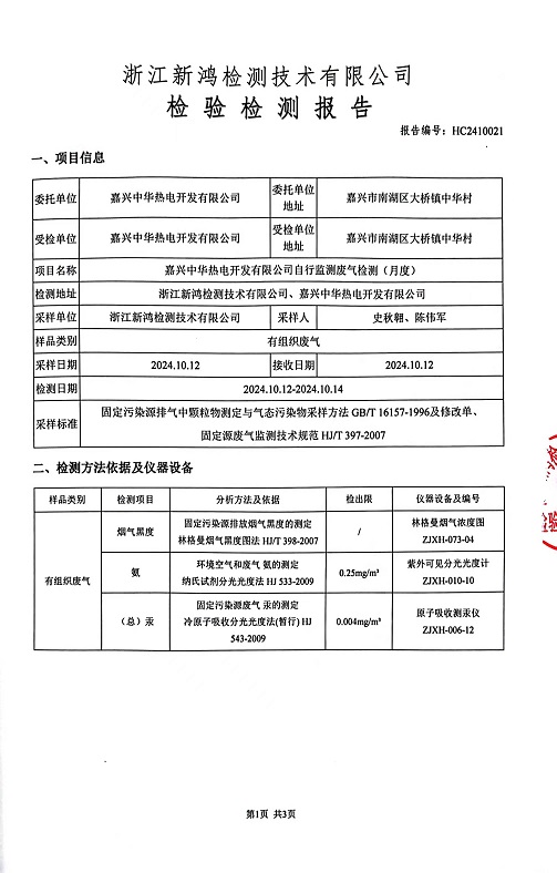 報告名稱:中華熱電10月廢氣檢測報告