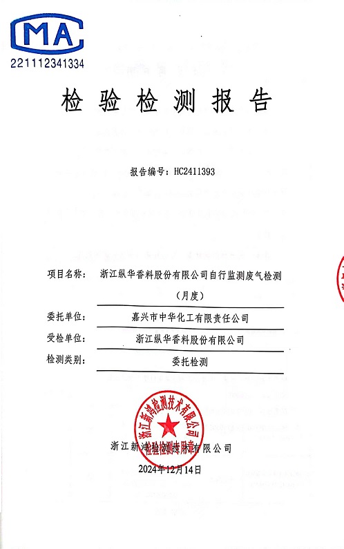 報(bào)告名稱:縱華香料12月廢氣檢測(cè)報(bào)告