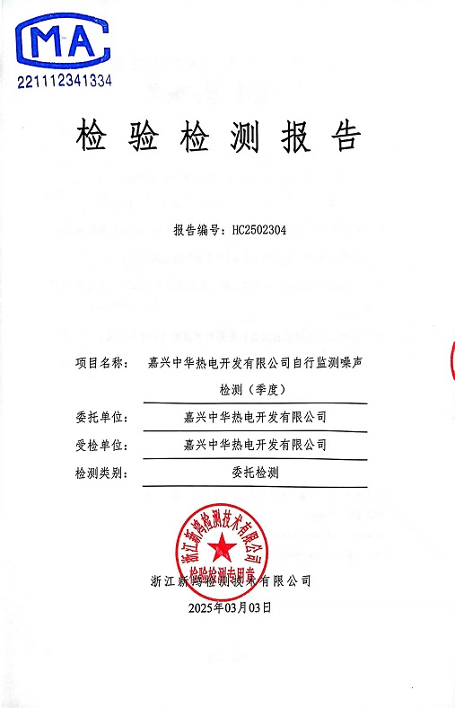 報(bào)告名稱:中華熱電2025年1季度噪聲檢測(cè)報(bào)告